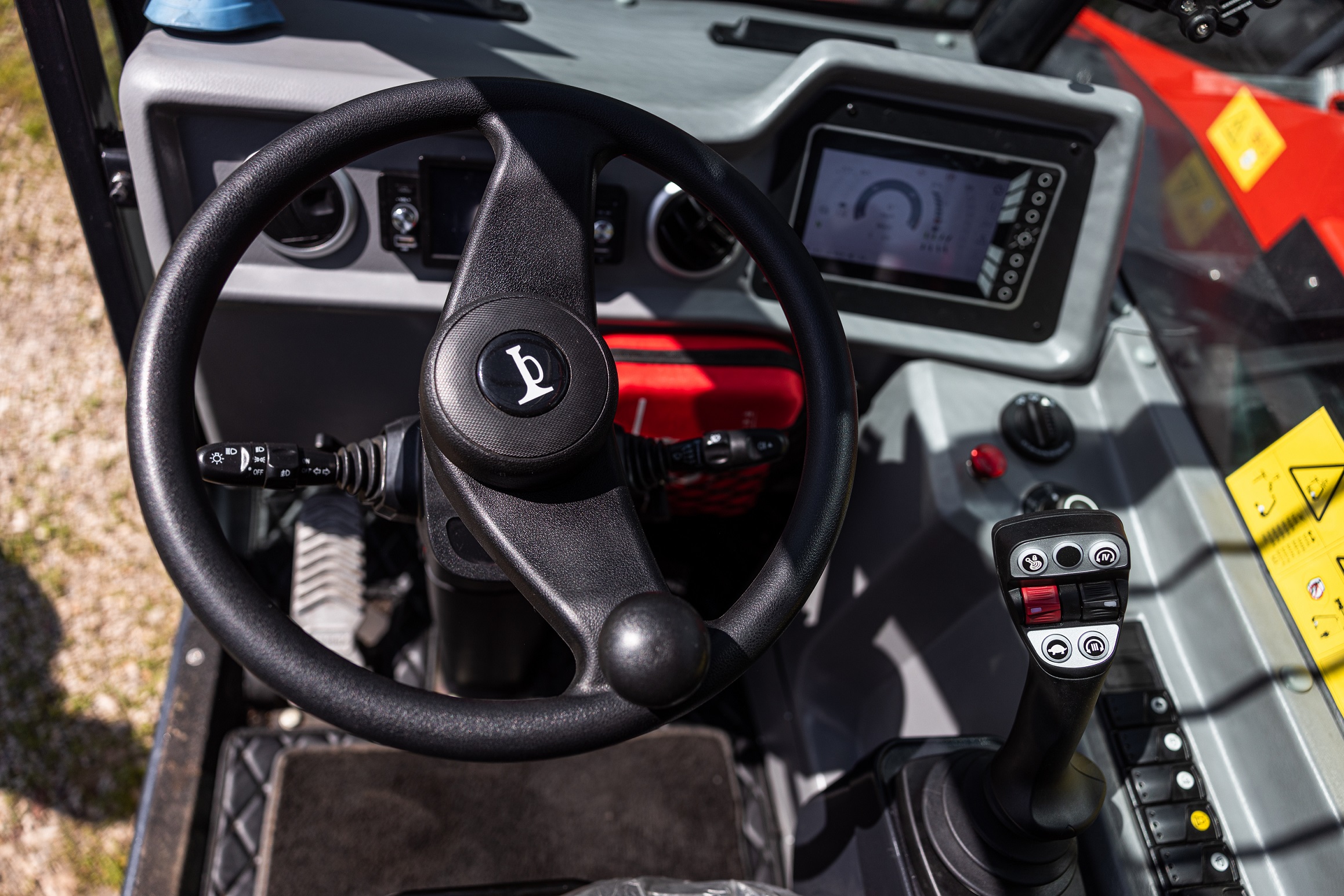 Погрузчики способны поднимать до 3,8 тонн груза. Максимальная высота подъема составляет 7 метров. В базовую комплектацию входят ковш и паллетные вилы. Дополнительно может быть установлена каретка быстросъема по стандарту JCB или Manitou. Под капотом — 4-цилиндровый дизельный двигатель Weichai мощностью 140 л.с. Мотор расположен поперечно, чтобы можно было легко добраться до всех точек контроля. Это позволяет оперативно проводить ежедневное обслуживание двигателя.