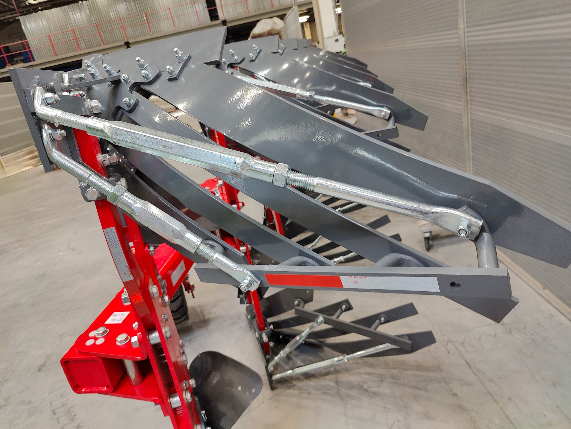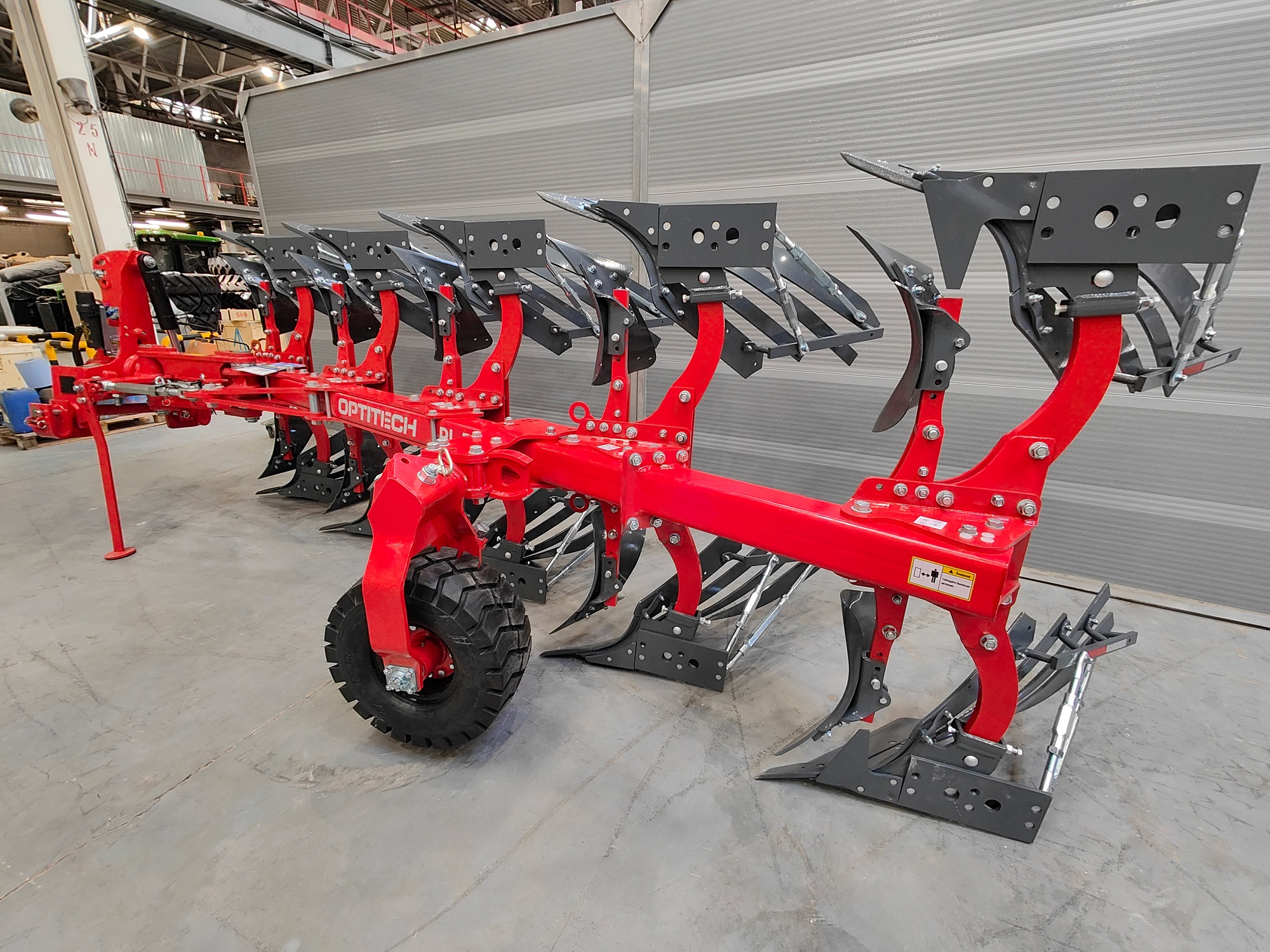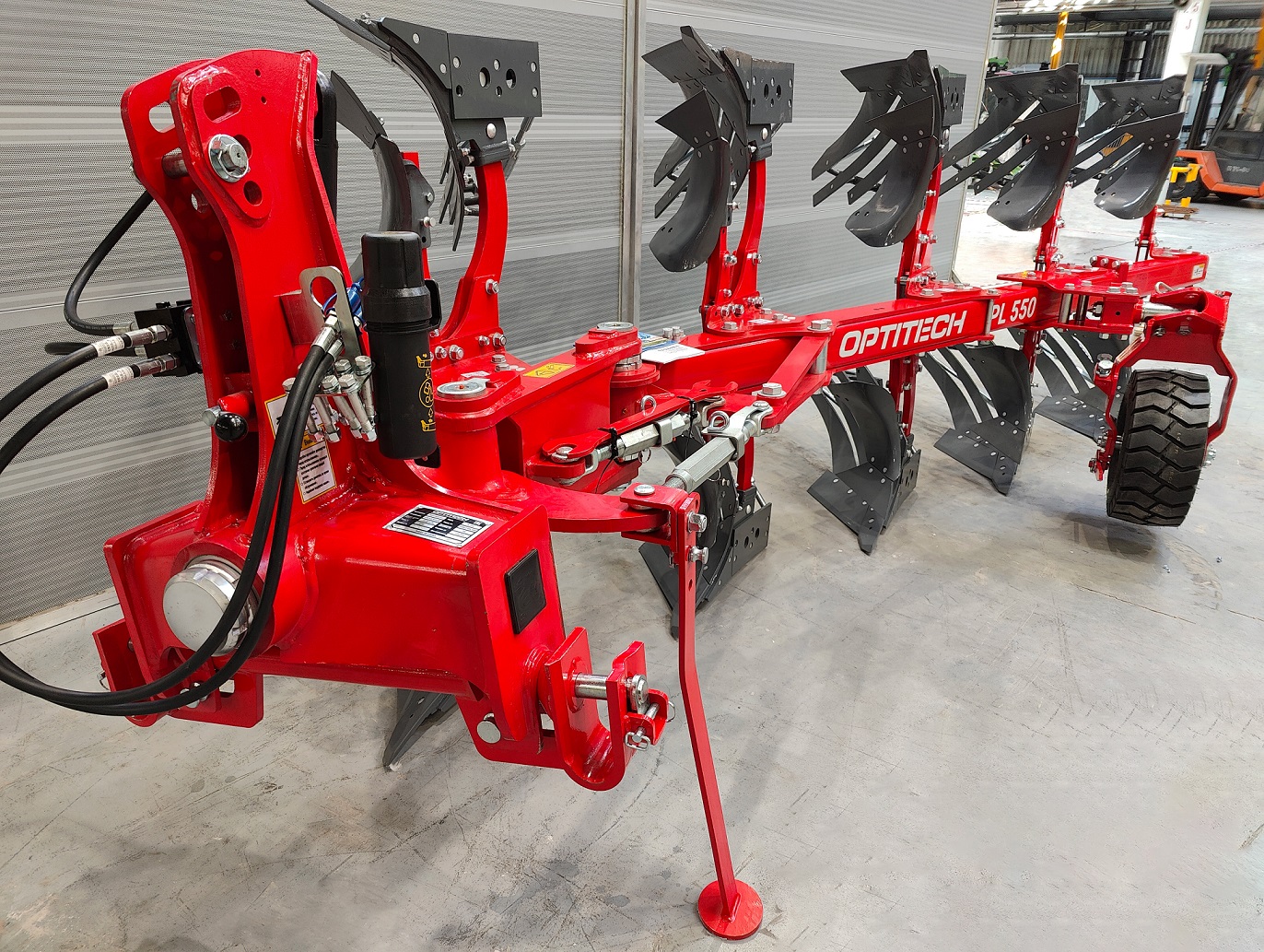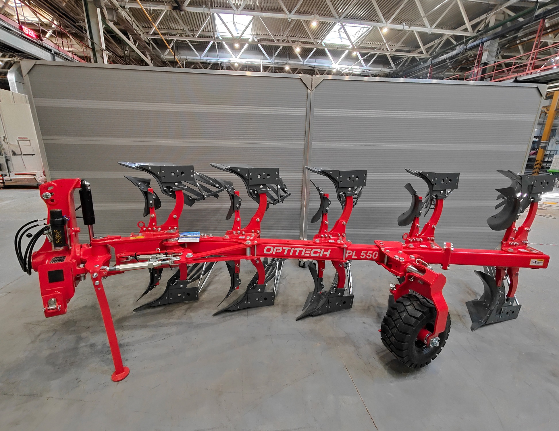 Оборотный плуг ОПТИТЭК — PL 550 весом 2,2 т рекомендован для работы с тракторами мощностью ориентировочно от 210 до 420 лошадиных сил. Способ соединения — трехточечная навеска. Число корпусов составляет 4+1. Ширина захвата регулируется на расстояние от 330 до 500 мм. Агрегат работает в борозде, эффективно разбивает почву на мелкие комки в процессе вспашки. Плуг укомплектован стандартным и кукурузным предплужником для эффективной заделки большого количества грубых растительных остатков. Оснащен системой, которая срабатывает при столкновении с препятствиями в почве (камни, корни, твердые комки) и предотвращает повреждение рабочих органов или рамы.