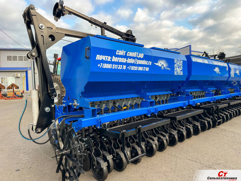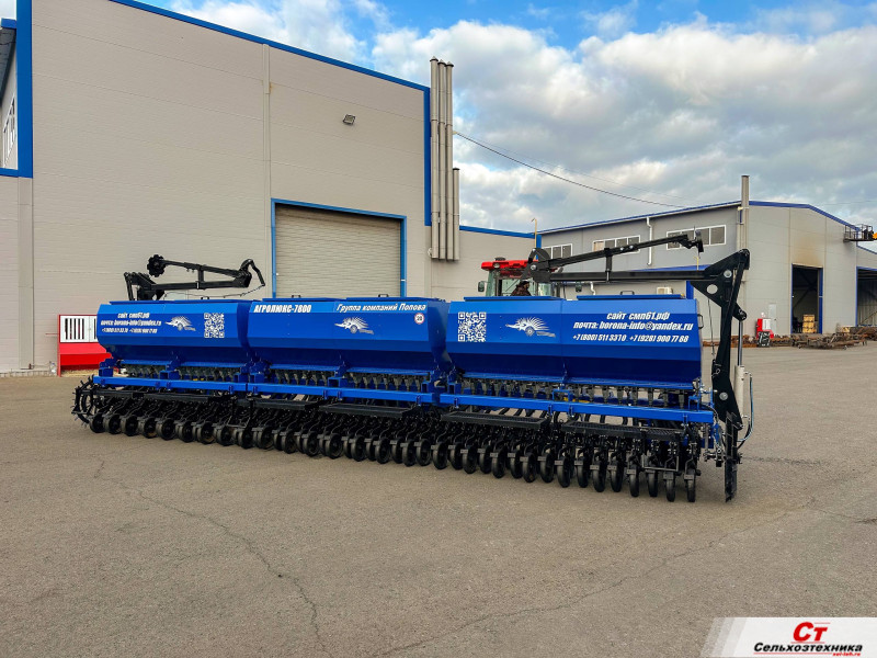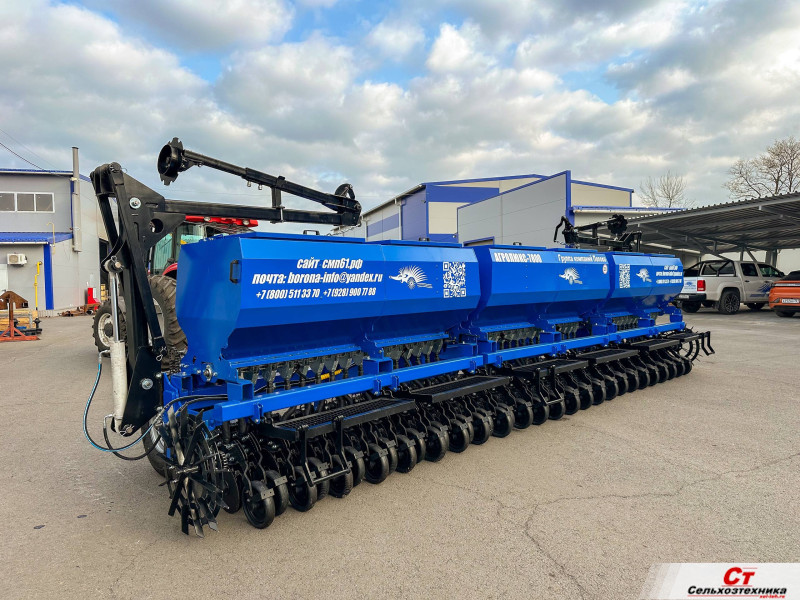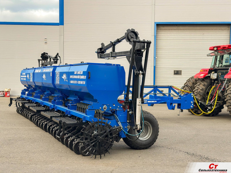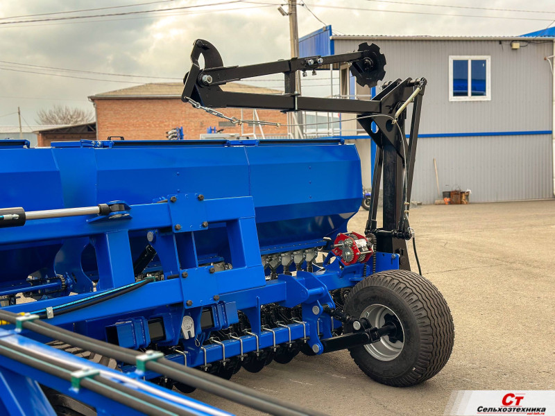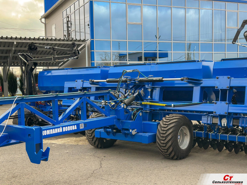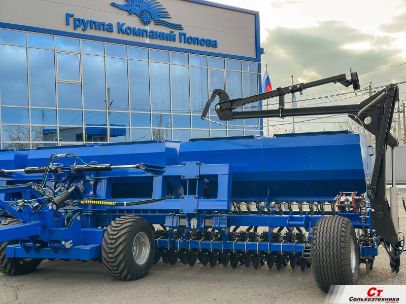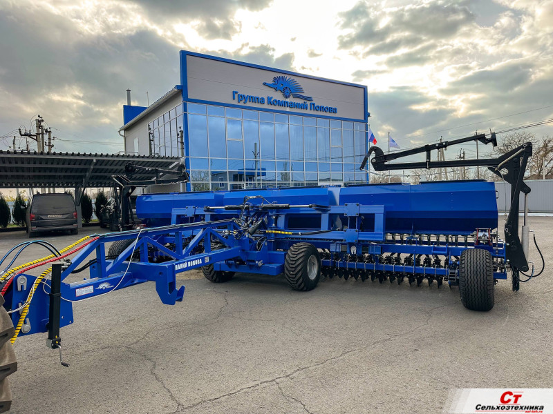 Широкозахватная двухдисковая сеялка производства группы компаний Попова. За один проход закрывает участок шириной 7,8м., что существенно ускоряет сев. Простота настройки и надежность сеялок ГК Попова достигается за счет механического привода высевающего аппарата.