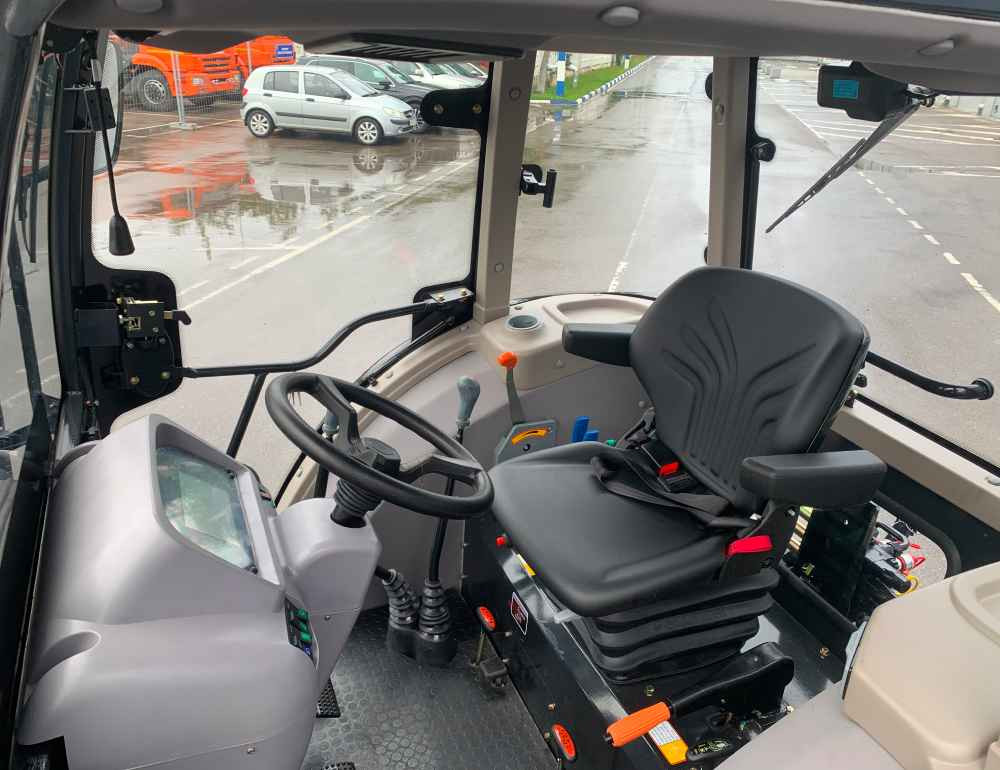 Современный дизайн кабины сочетает комфорт для водителя с продуманным расположением элементов управления техникой. Мягкое кресло трактора регулируется по высоте, оснащено амортизацией и двумя подлокотниками. Комфортный микроклимат внутри Зауберга обеспечивается отопителем, кондиционером, воздушным фильтром и опцией установки двери в режим проветривания. Рулевое управление трактором гидравлическое, руль телескопический, то есть регулируется по высоте. Продуманная конструкция остекления Zauberg обеспечивает водителю круговой обзор, дополнительно установлена камера заднего вида. Мощное экономичное освещение позволяет выполнять работы в темное время суток.